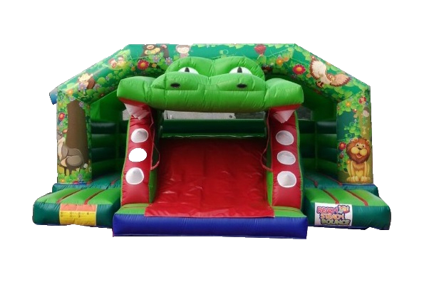 Our Crocodile Bounce n Slide will be a sure hit with your little adventurers... will they take on the croc? The 3D crocodile slide adds another dimension of fun to this amazing bouncy castle and always proves to a be hit with the kids. This inflatable is suitable for children upto the age of 16 years old.... but is a popular choice for toddlers and younger children due to to the low access height and an open front for an unobstructed view of your children. It is a large sized castle and although will fit in most indoor venues, please be sure to double check your available space. This castle is a real head turner with the crocodile slide and also goes well as part of our amazing jungle package.